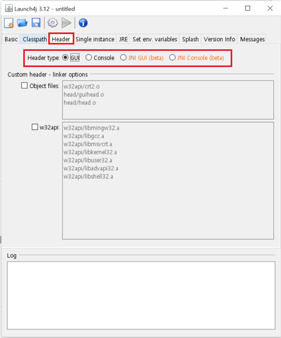 2-3. 'Header'탭에서 실행 프로그램이 'GUI'화면이 있는 프로그램인지, 'Console'로 작동하는 프로그램인지 체크