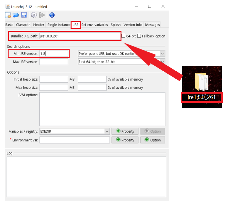 [Bundled JRE path] : Java가 설치 되지 않은 환경에서 실행할 jre명 입력(아까 위에서 복붙해 놓은 jre폴더명 입력)