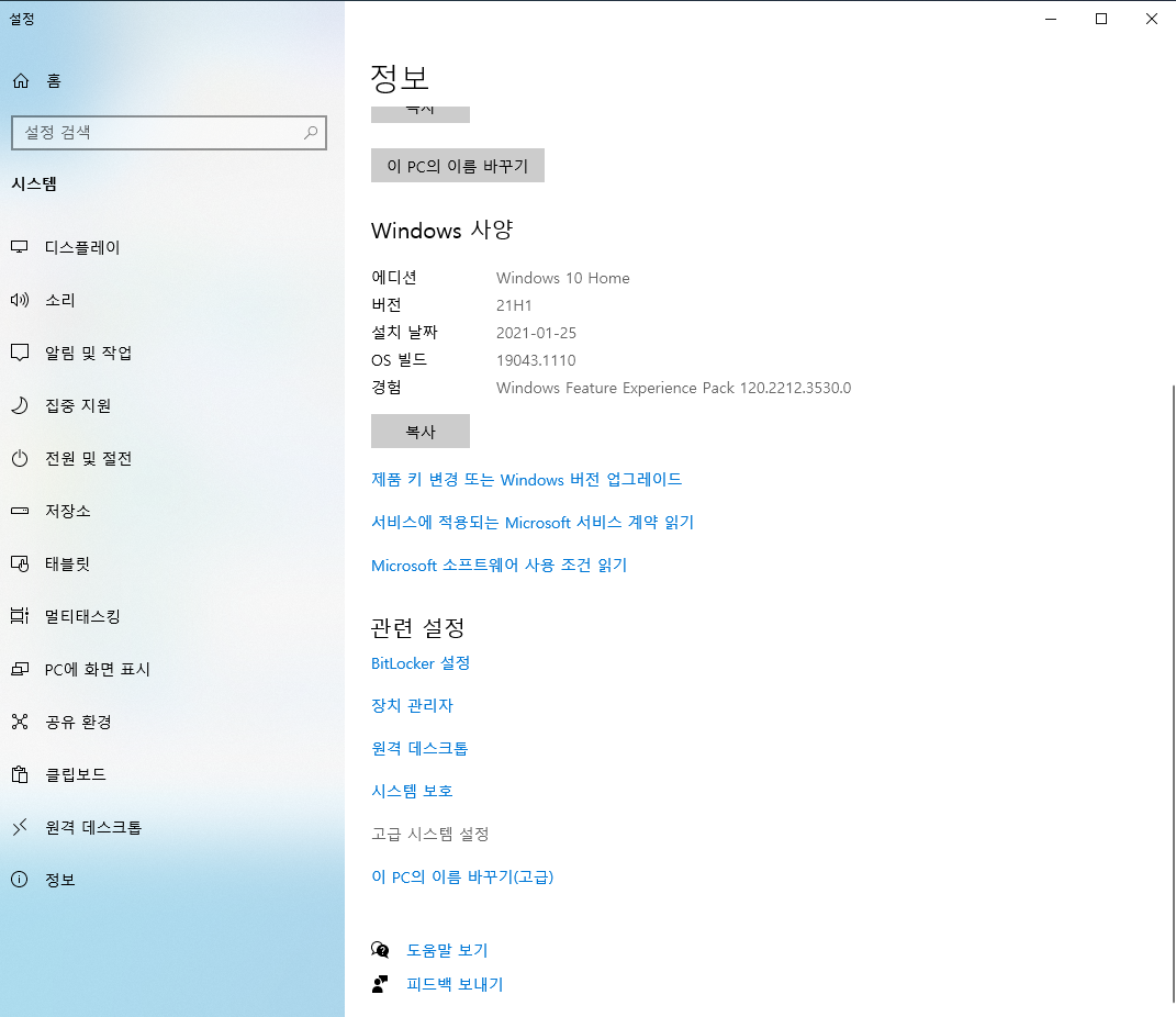 1-1. 제어판 - 시스템 및 보안 - 시스템 클릭