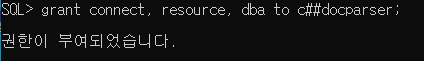 SQL> grant connect, resource, dba to c##[username];