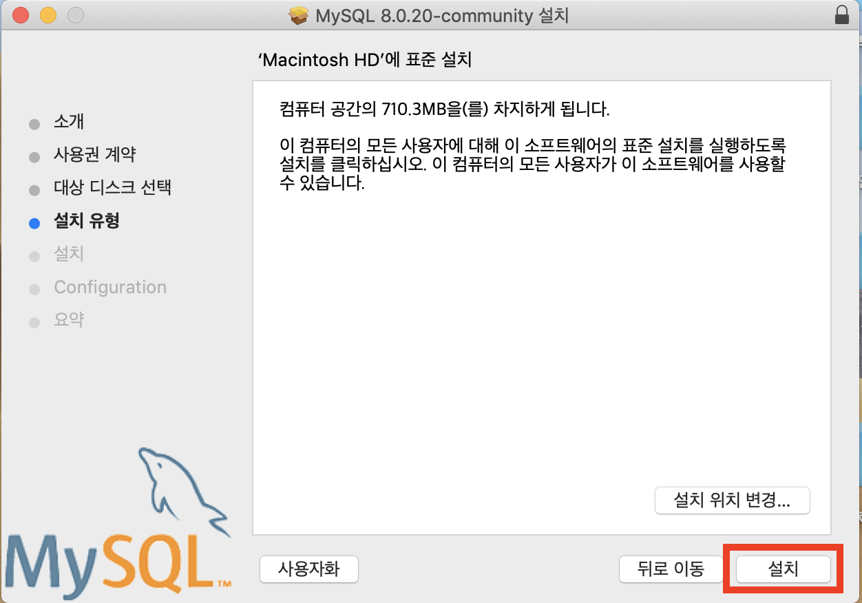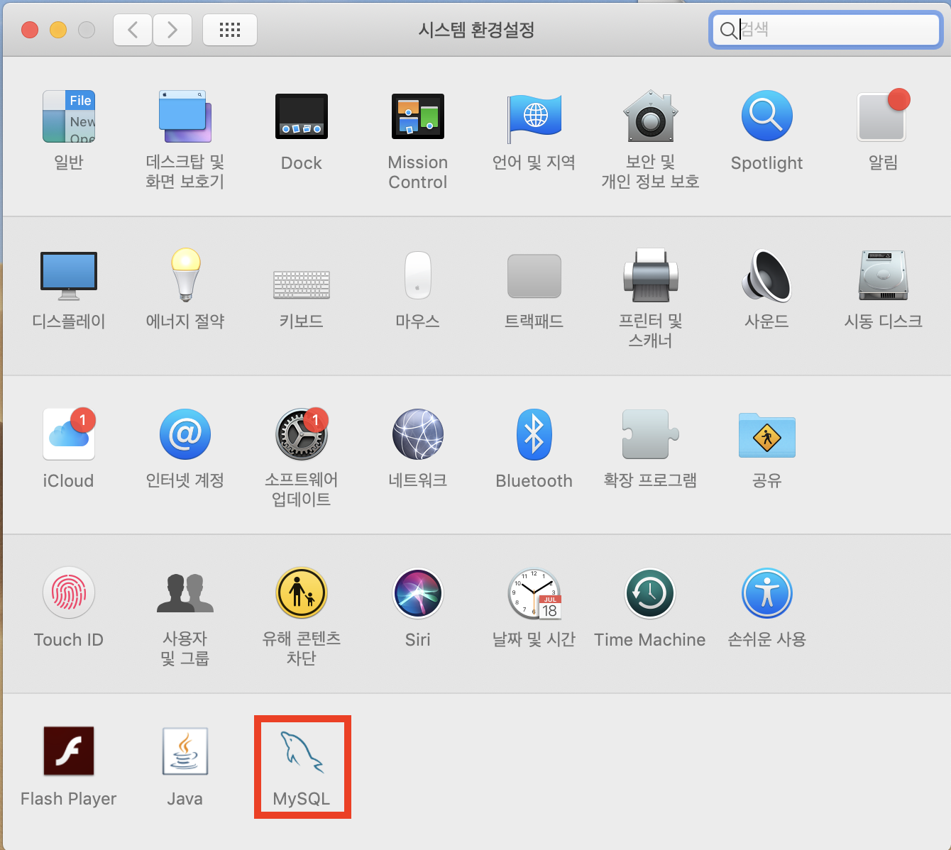 11. 설치된 MySQL이 잘 실행되고 있는지'시스템환경설정'에 진입하여 확인해봅니다.