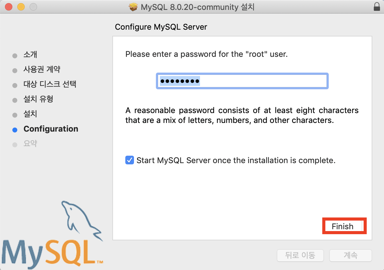 (이 'root'계정 비밀번호는 잘 기억해두셔야 합니다)