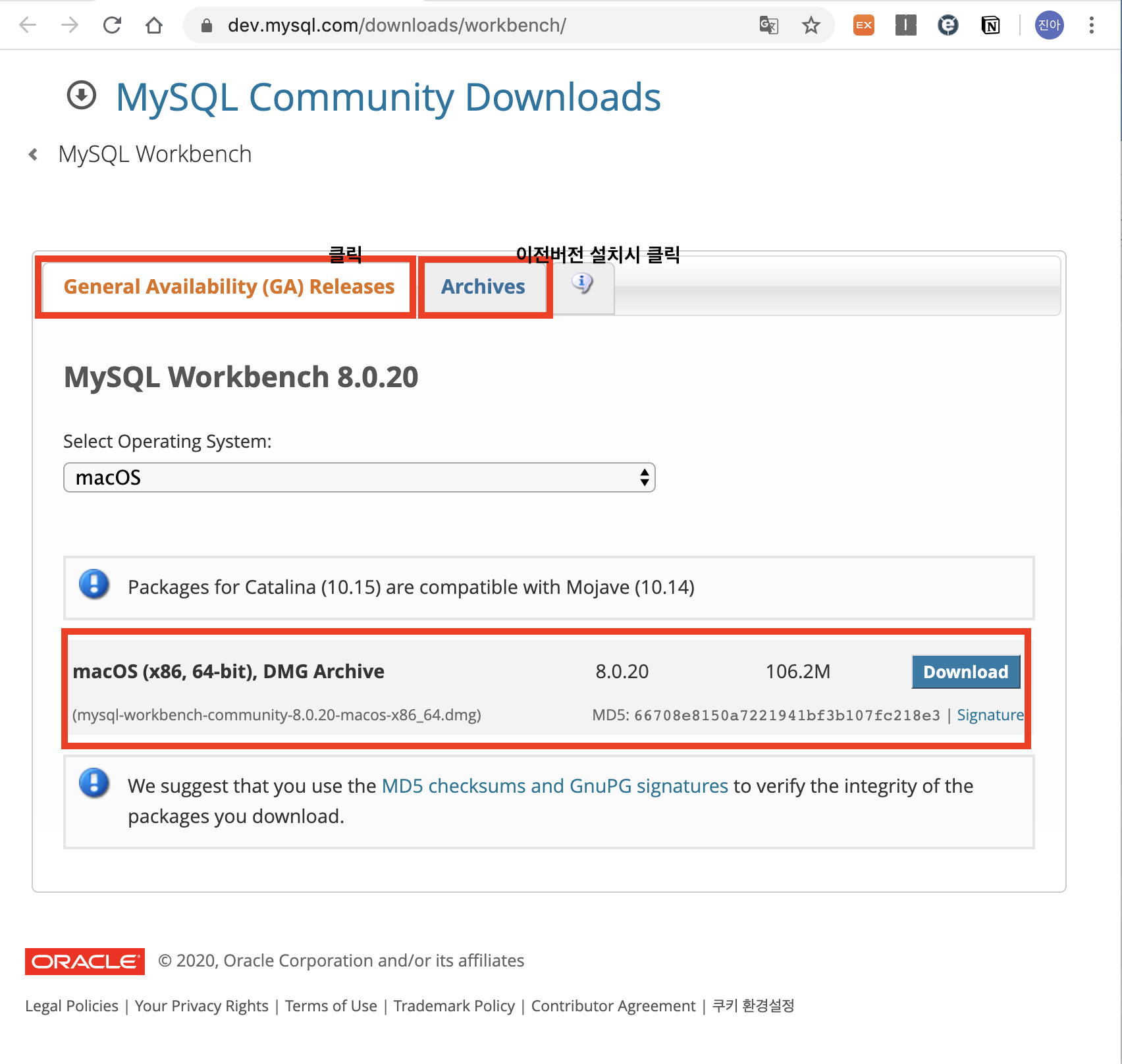 1. MySQL을 바로 터미널에서 실행하는 것도 가능하지만, 모든 것을 터미널에서 하기엔 너무 딱딱하고 어려울 수 있으므로MySQL Workbench 설치방법을 알아보려고 합니다.일단, 설치파일 다운로드를 위해 https://dev.mysql.com/downloads/workbench/로 접속합니다.