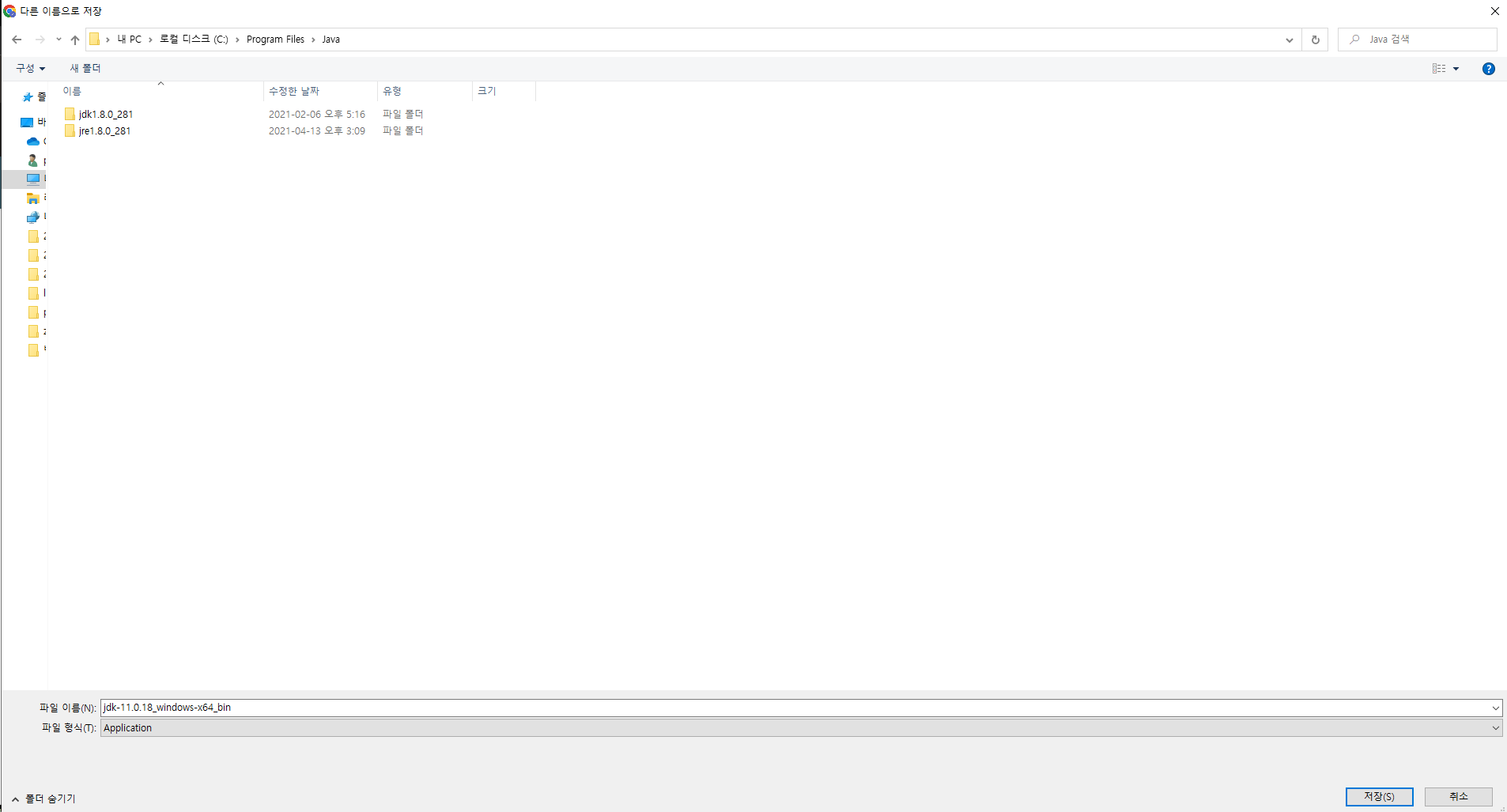 +필자의 경우 이미 1.8이 설치된 케이스로 버전변경을 위해 11버전 추가설치