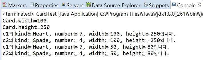 System.out.println("c2의 color는 " + c2.color + " c2의 gearType은 " + c2.gearType + " c2의 door는 " + c2.door + " 입니다.");